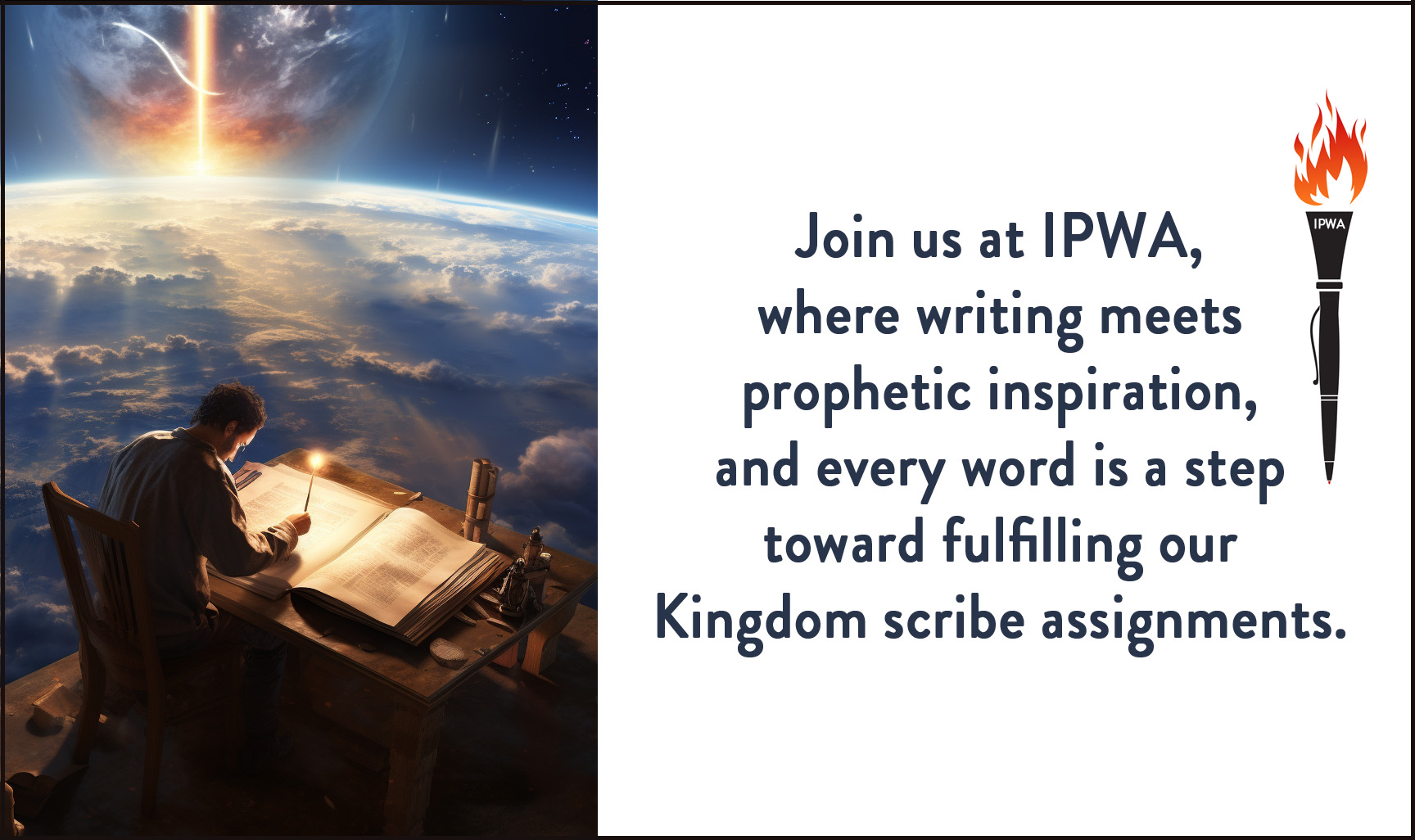 The International Prophetic Writers Association (IPWA) serves prophets who write, writers who are prophetic, and writers called to share messages and wisdom from God's heart.